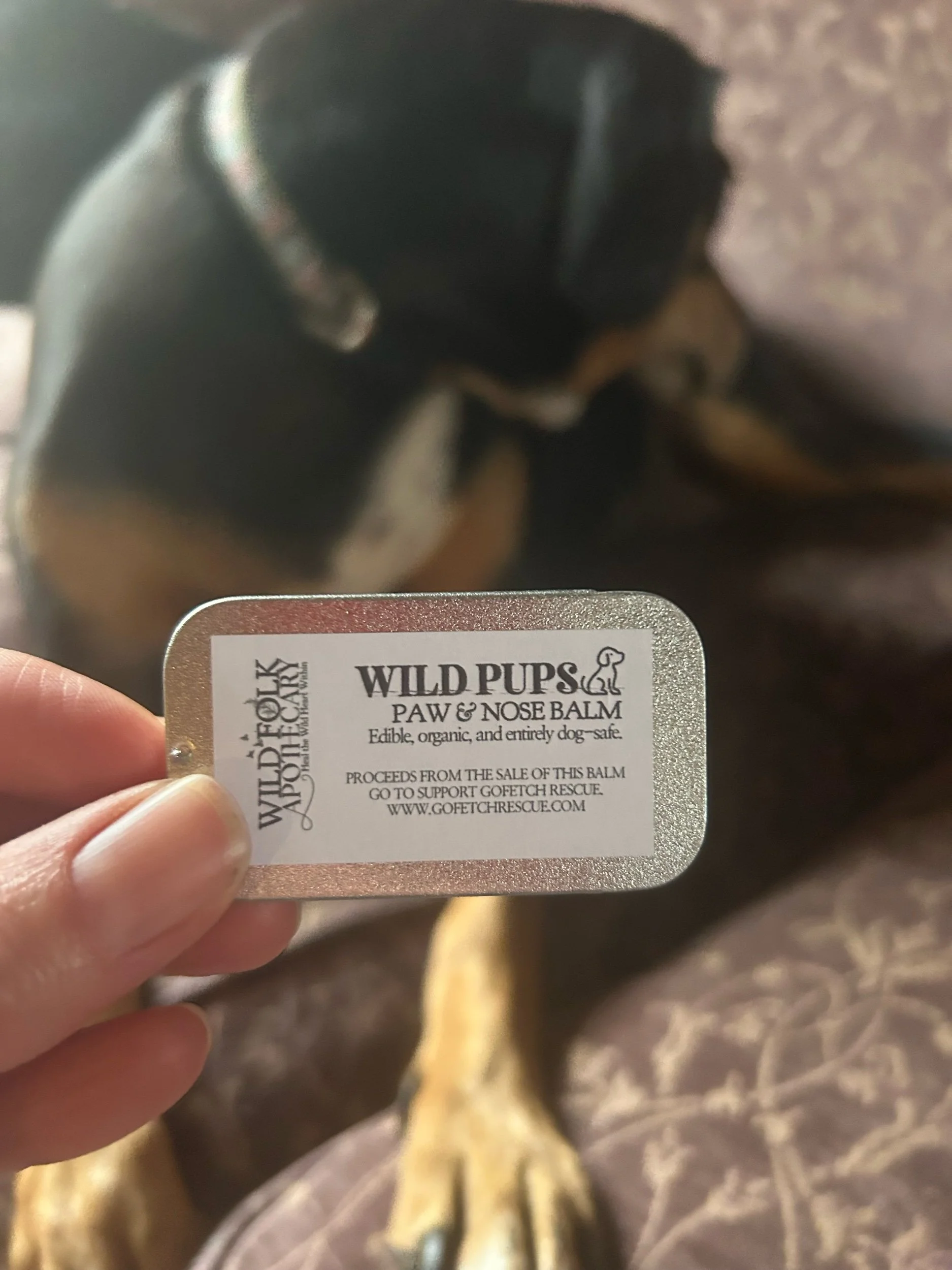 Wild Pups Paw & Nose Balm is a dog-safe, entirely edible moisturising and healing balm for sore paws, dry noses, and itchy bits.